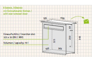 Briefkasten mit hinterer Entnahme, 402 x 343 x 195 mm (BHT)