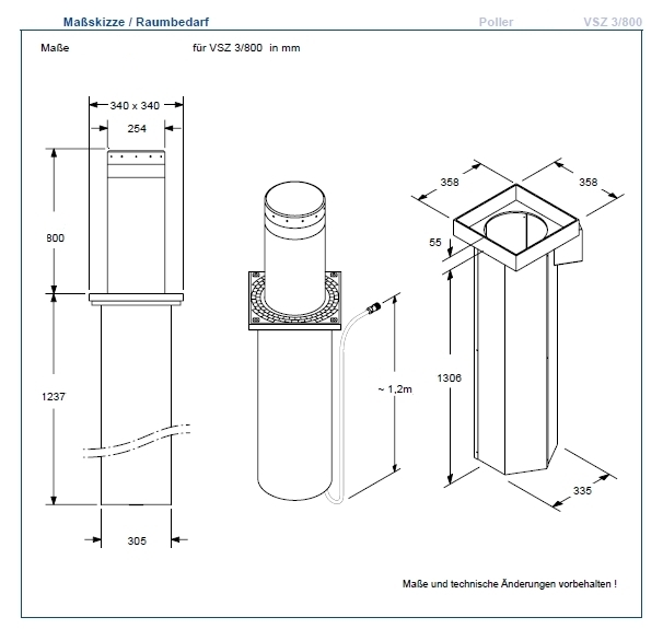 TOUSEK - Poller VSZ 3/800 - SET - ein Poller