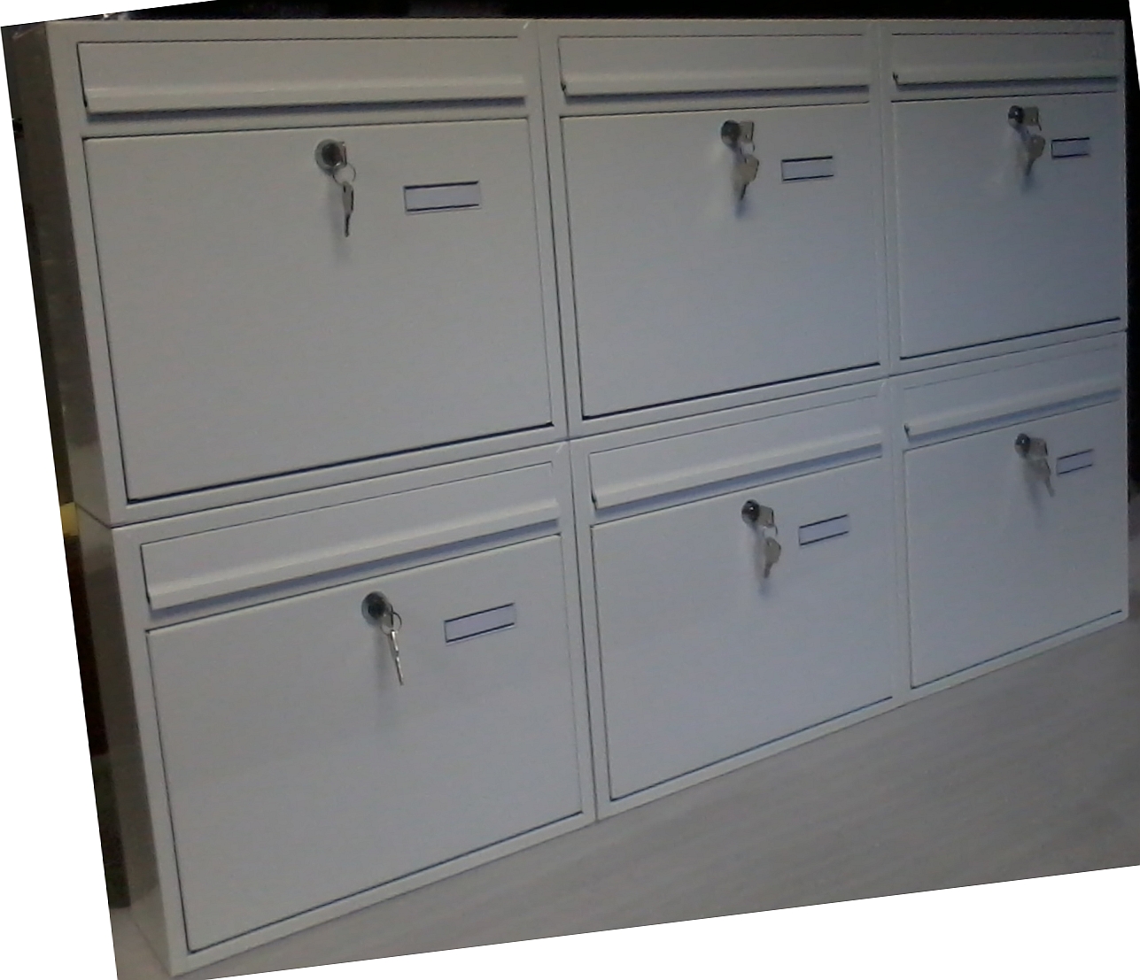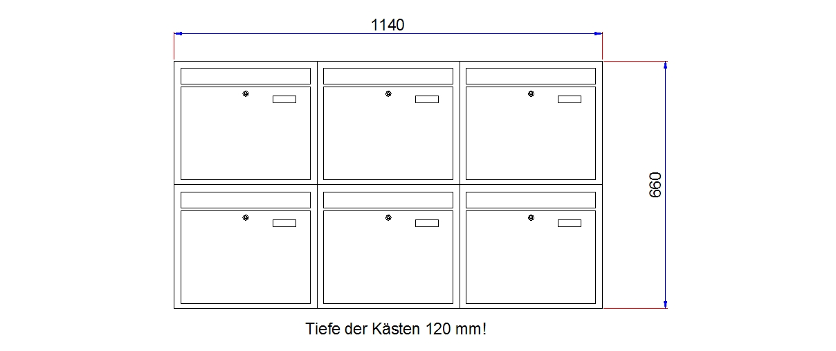 Sechs Briefkästen incl. zwei Schlüssel pro Tür.