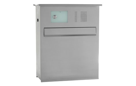 Briefkasten mit hinterer Entnahme und Kommunikation oberhalb des Einwurfs (Funktionskasten),
