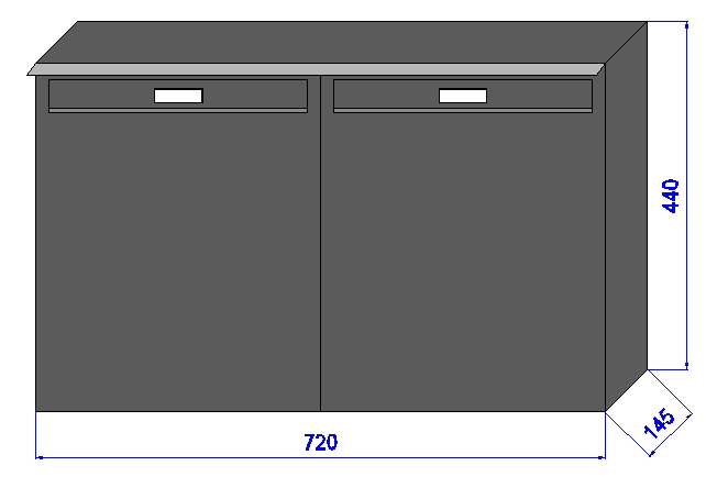 Gesamt-Kastenmaße: ca B720 x H440 x T145 mm