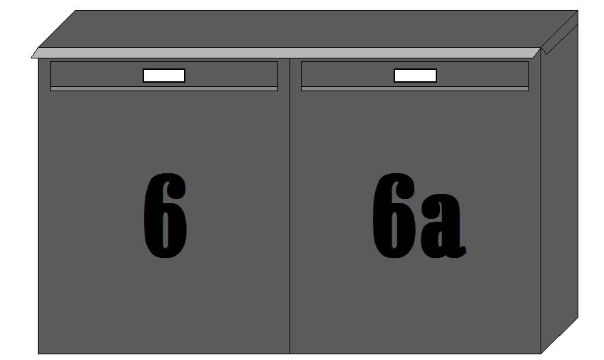 Zaunbriefkasten, waagerecht angeordnet, mit gemeinsamen Regendach.